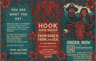 We take quality seriously at Hook and Hoof. With discipline and attention-to-details, we have created Hook and Hoof, the ultimate ranch-to-kitchen enterprise. We are excited to prove to you what "quality" truly means, and excited to engage in the good health of our local communities.